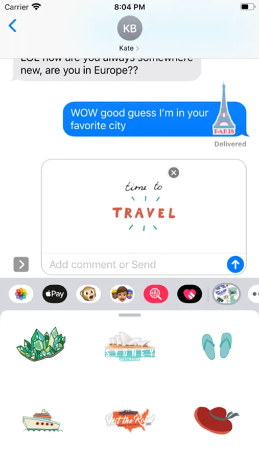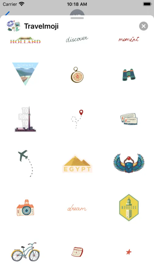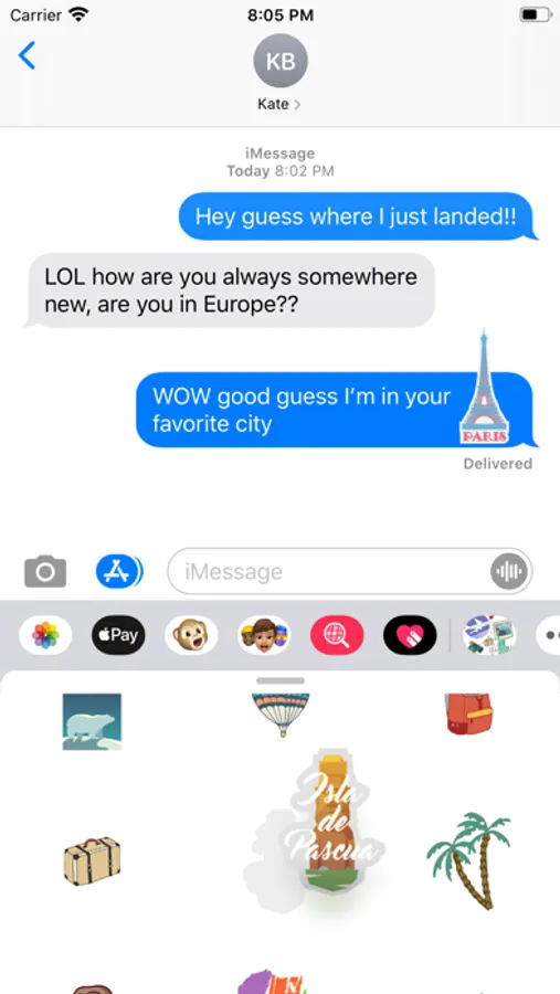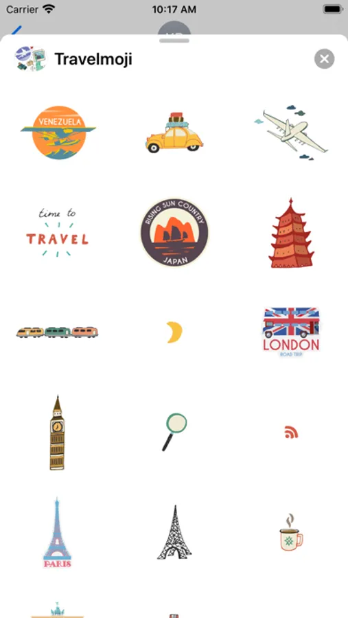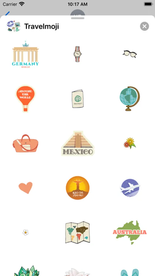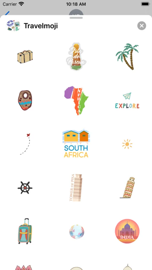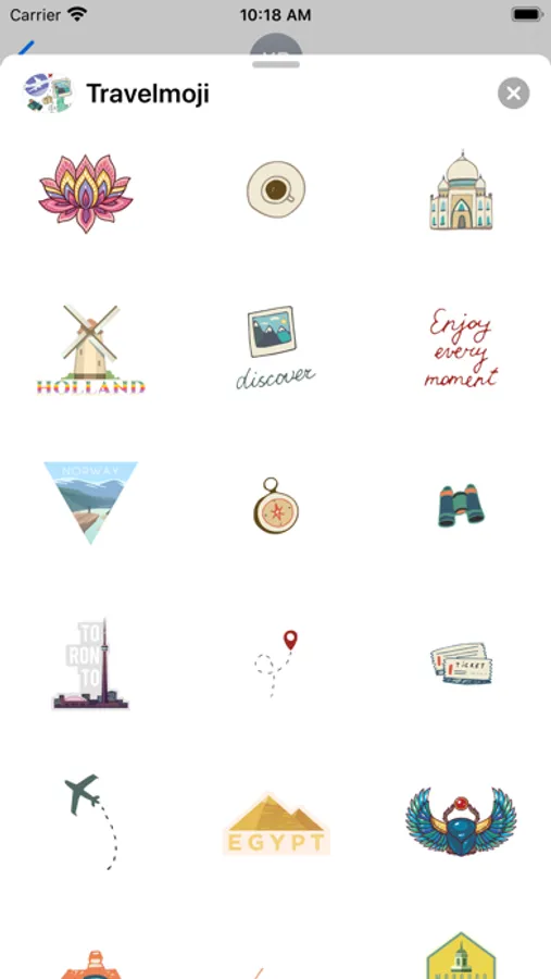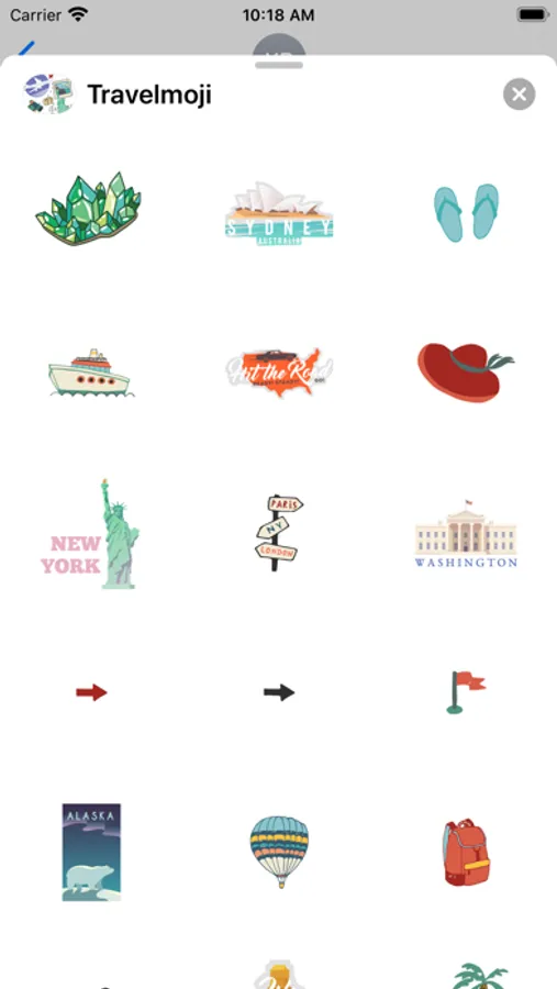 Travelmoji are a fun way update friends and family about your travels and can even be used during a FaceTime! Press and hold any of these 80 unique travel stickers, when they peel off place them anywhere in a conversation!