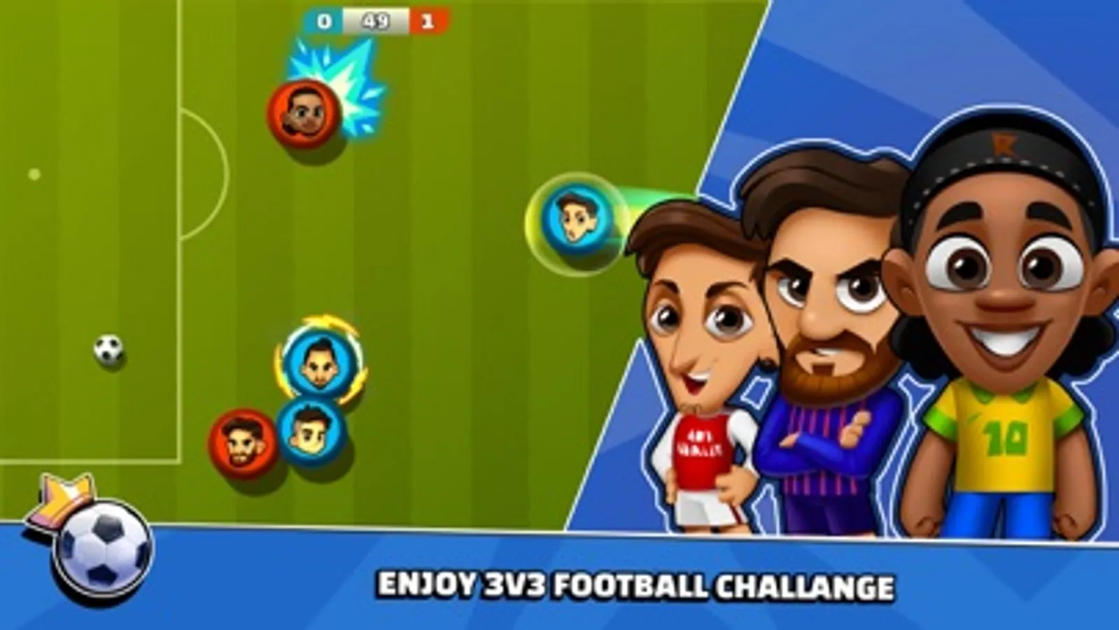 Dribble, kick, strike, dash, jump, and score by using your hero. Use your basic skills and superpowers to beat your opponents.
