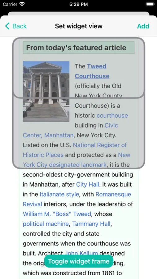 Just add a page to Glimpse. Choose the right area of the page and then this page is inside the Glimpse Widget on your Homescreen.