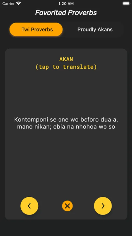 - Create an account with us to add your own Proudly Akan Proverbs(Fun Proverbs) to put smiles on people's faces