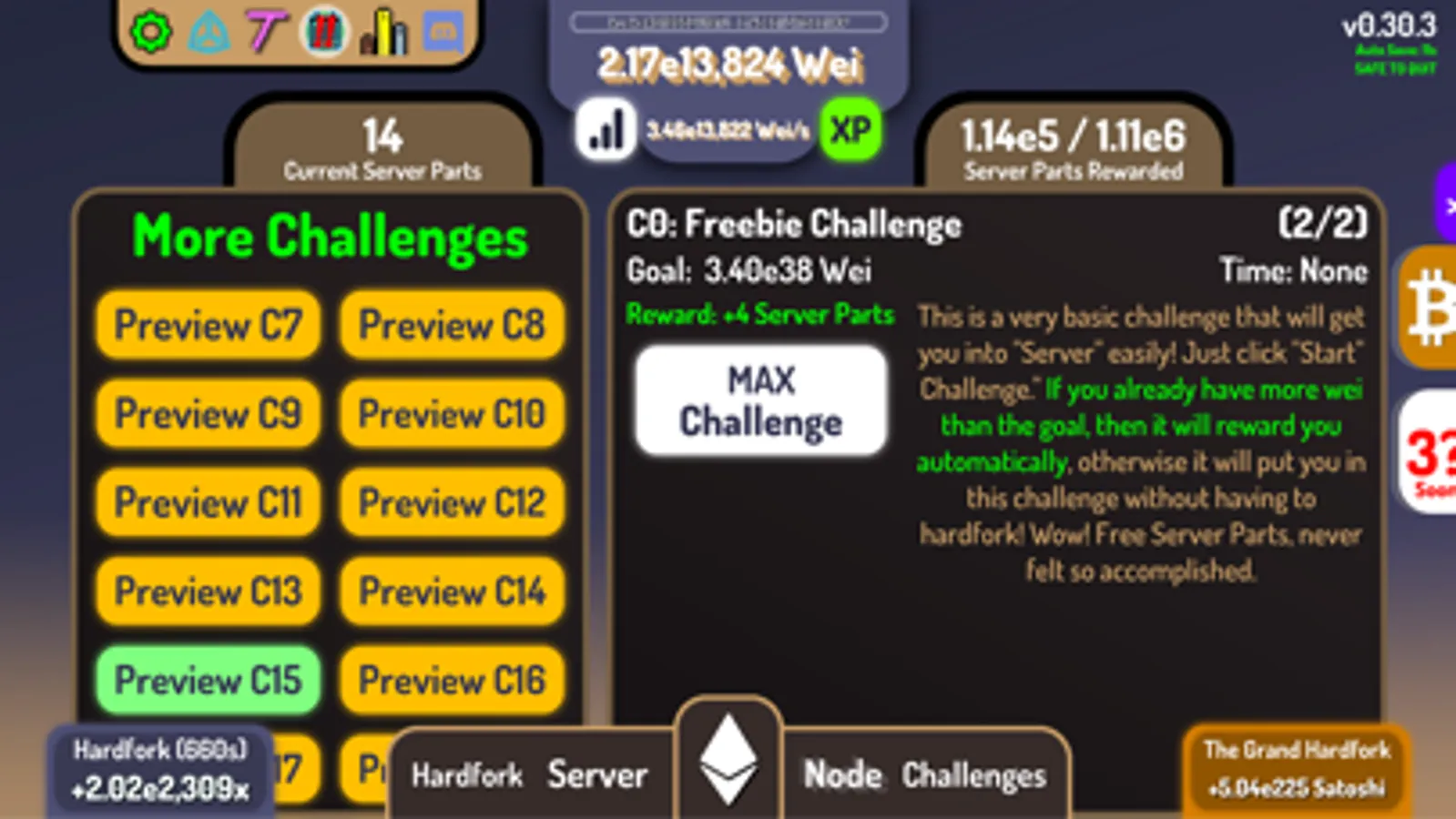 There are 21 Challenges in Ethereum that reward you in Server Parts, and there are 10 Speedrun Challenges in Bitcoin!