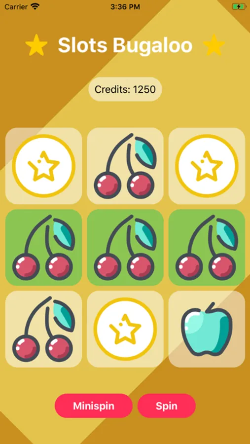 Go with the Minispin option to see play the odds. Each Minispin is 5 credits but rewards 50 credits! It only pays out on a horizontal match in the middle row.