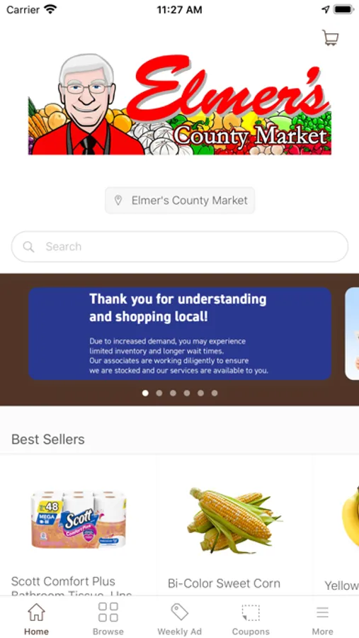 This app is a quick and easy way for customers to grocery shop with us at Elmer’s County Market. Check your Elmer’s Rewards Points total, get coupons and more! Curbside pickup and delivery available
