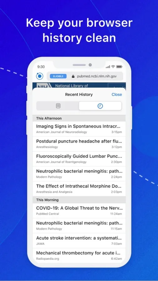 Cleaner history. Keep your browsing history focused on clinical articles, even when you visit non-clinical sites.