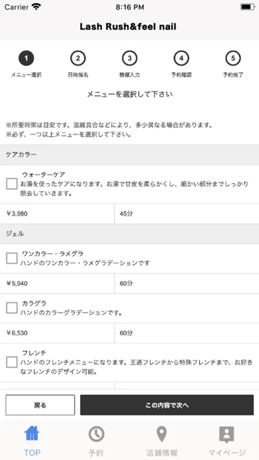 予約状況の確認やキャンセルがマイページ上から行えます。スタッフの登録が出来るので前もって担当者を登録しておけばマイページからスムーズな指名予約が可能です。