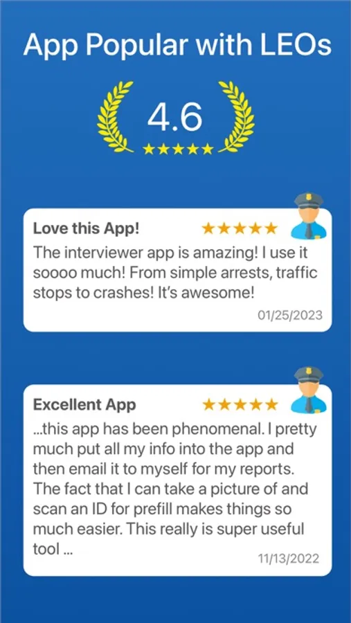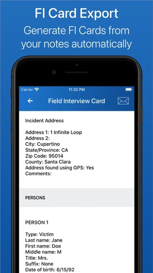 The Field Interview Card app was created by LEOs for LEOs to easily take field interview notes and generate FI cards. I was made to replace field interview paper notebooks and speed up the note taking process and accuracy for LEOs.