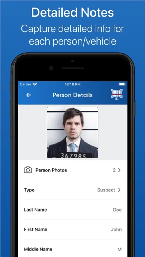 - Enter details about each person involved (victim, witness, suspect, ...). Create as many persons profile as you need to.