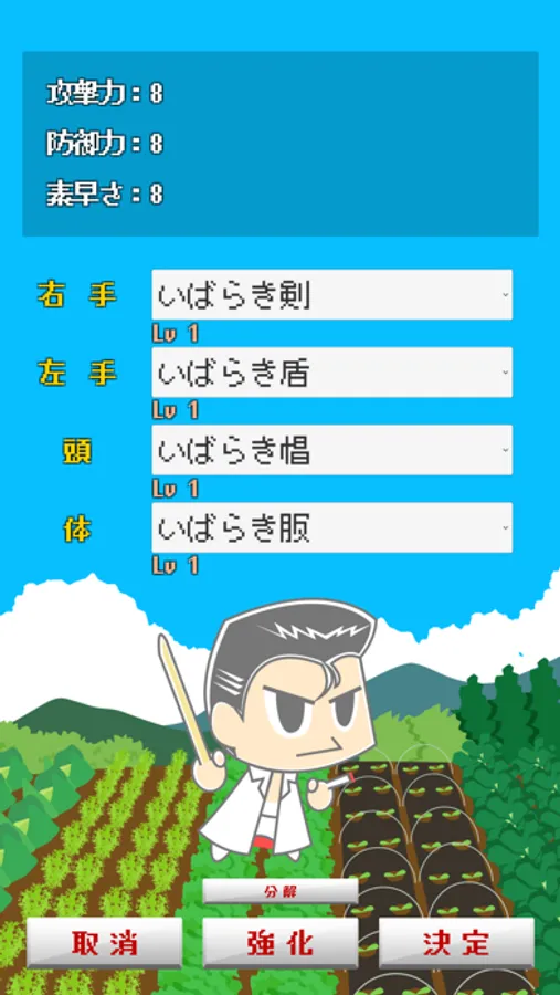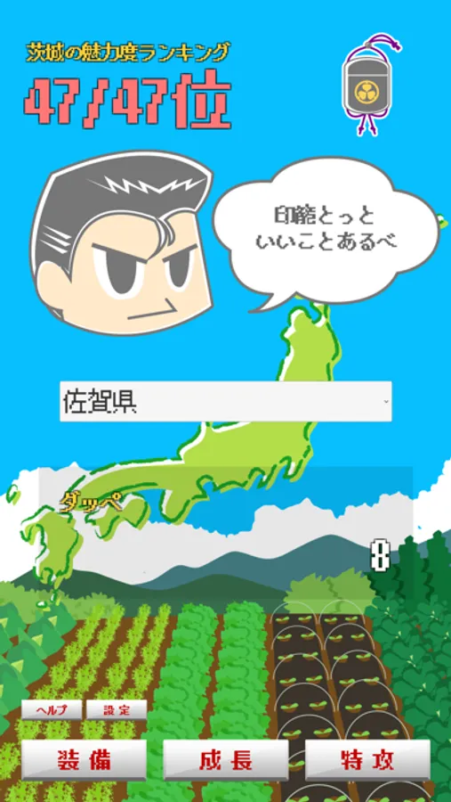 奪った魅力を装備し、勇者イバラキを強化しよう。なまはげの頭や竜馬のピストルなど、47都道府県×4パーツで組み合わせ総数はなんと480万通り!