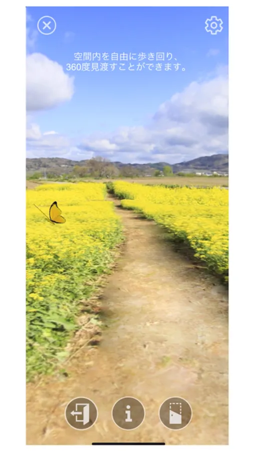カメラ越しに現れるARドアを通り、360度のVR空間を自由に歩き回れます。