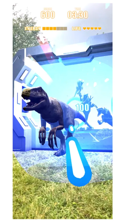 ドアを開けると、恐竜の世界に。襲いかかってくる恐竜を倒せ!
