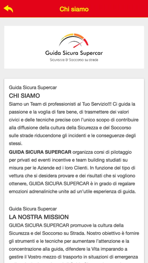 GUIDA SICURA SUPERCAR organizza corsi di pilotaggio per privati ed eventi incentive e team building studiati su misura per le Aziende ed i loro Clienti. In funzione del tipo di vettura che si desidera provare e dei risultati che si vogliono ottenere, GUIDA SICURA SUPERCAR è in grado di regalare emozioni adrenaliniche unite ad un’utile esperienza di guida. Scuola Piloti - Corsi di Guida Sicura, Guida Sportiva, Guida su Neve e Ghiaccio, Guida Moto, Guida Autobus, TEAM BUILDING, Eventi, Matrimoni, Corsi Istruttori diGuida Sicura e Sportiva GSS LA NOSTRA MISSION GUIDA SICURA SUPERCAR promuove la cultura della Sicurezza e del Soccorso su Strada.