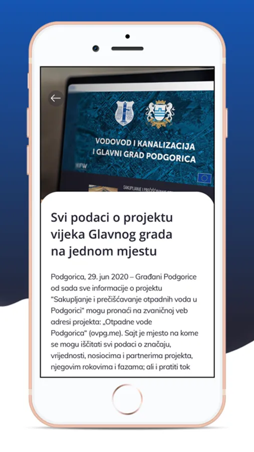 Aplikacija zahvaljujući kojoj je moguće pratiti realizaciju projekta „Sakupljanje i prečišćavanje otpadnih voda Podgorica“. Na jednom mjestu su svi podaci o relevantnim aspektima za građane: