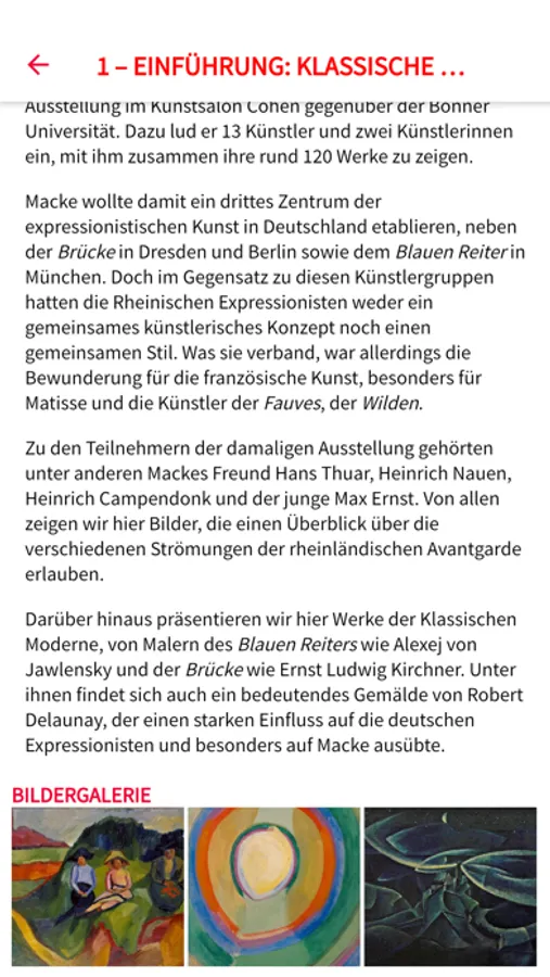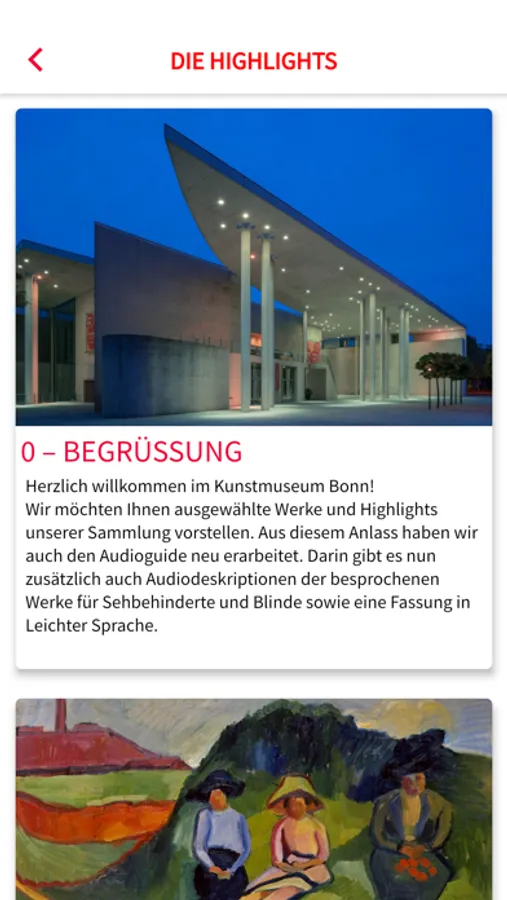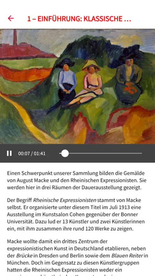Der kostenlose Audioguide lädt dazu ein, die Highlights und die Geschichte der Sammlung des Kunstmuseum Bonn kennenzulernen. Die Tour durch die Sammlungspräsentation umfasst 37 Stationen mit Audiotracks und Abbildungen.