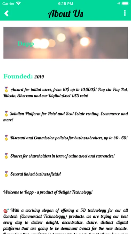 With a working slogan of offering a 5D technology for our all Comtech (Commercial Technology) products, we are trying our best every day to deliver delight, decentralize, desire, distinct digital platforms that are going to be dominant trends for the new decade. Regarding this, our Dapp is developed to be a solution platform for major businesses in the market, such as Hotel and Real Estate renting, E-commerce and other financial services that are coming shortly.