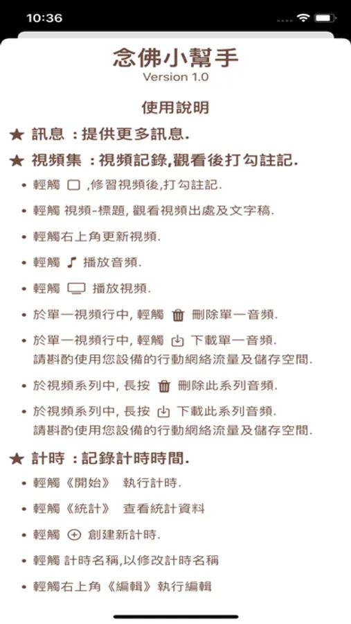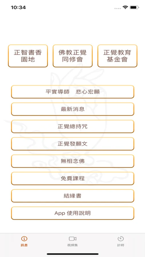 本App 集成弘法視頻,連結網站及提供拜佛,念佛計時功能。