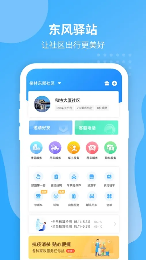 东风驿站在社区开展用车、购车、租车、车主服务等多场景服务,同时结合社区特色为居民提供多种社区服务