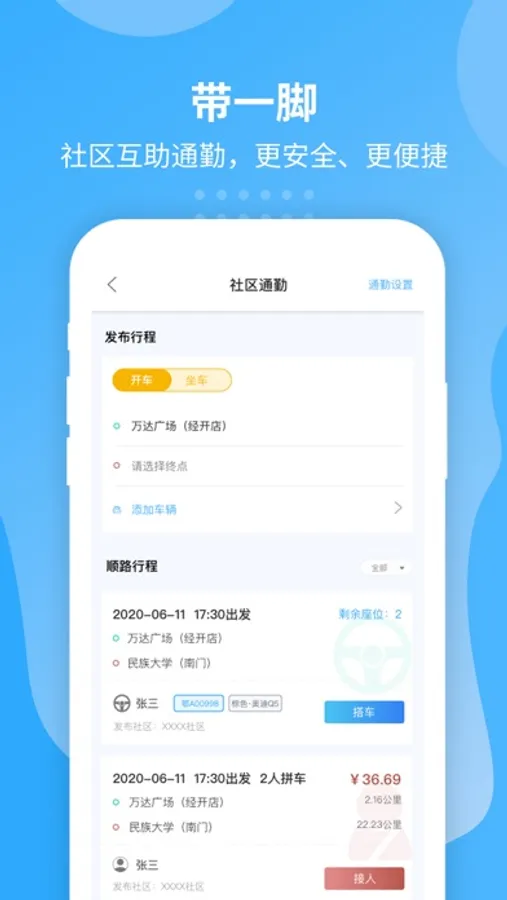 3、带一脚:通勤线路推荐,满足社区用户上下班用车