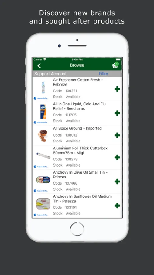 Once registered, you can browse our product listings or search for products by product code, by description or by scanning a barcode with your device’s camera. Quickly and easily browse our stocklist availability, place orders and receive special promotions and discounts, all from your smartphone or tablet.