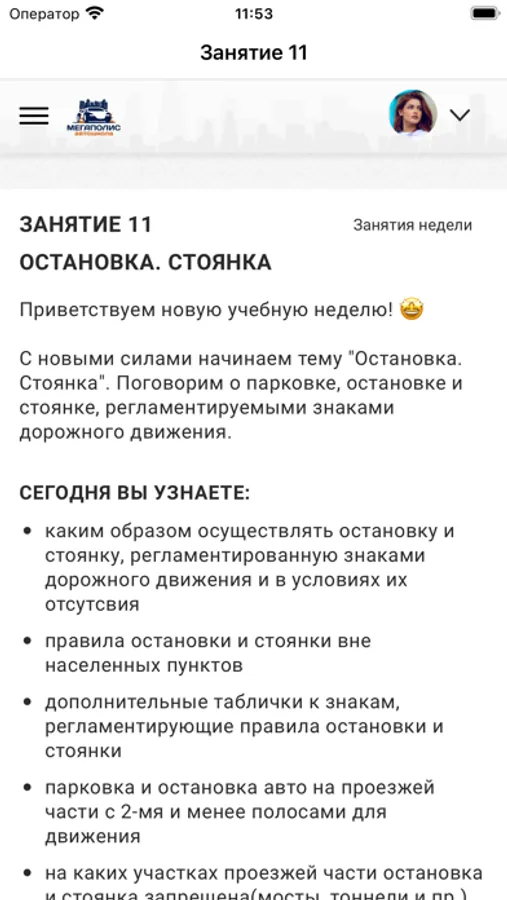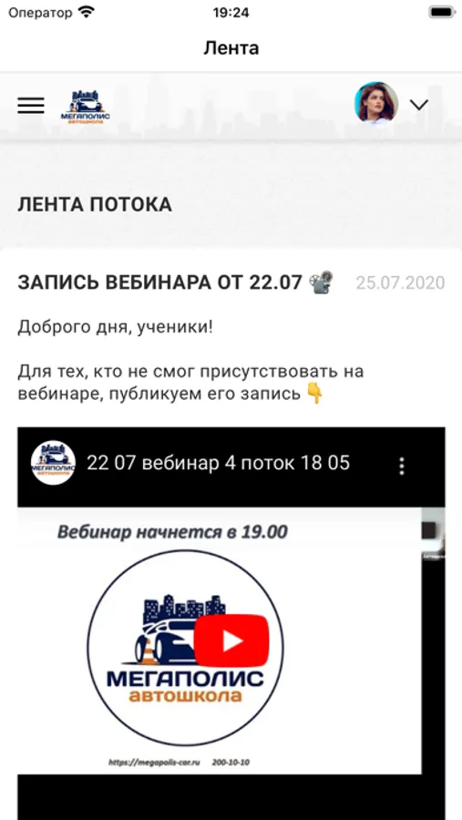 Личный кабинет учащегося автошколы Мегаполис