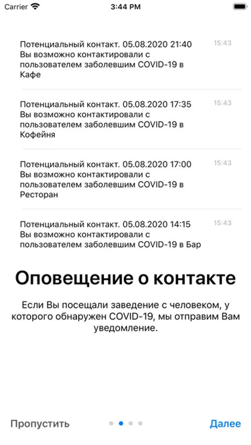 Поделитесь со всеми, с кем контактировали, если обнаружите, что у вас COVID-19. С помощью истории посещений, Вы сможете определить, где Вы были. Это поможет быстро отреагировать и остановить дальнейшее распространение вируса.