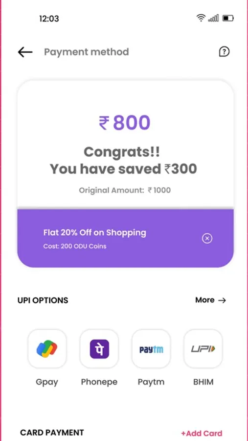 Earn ODU coins on every shopping bill paid through ODU Checkout and get the eligibility to avail up to 30% discounts and much more rewards.