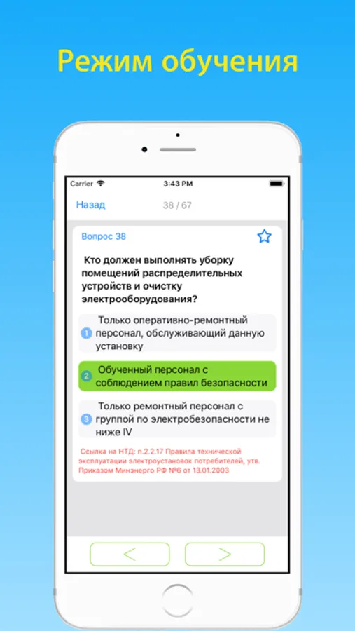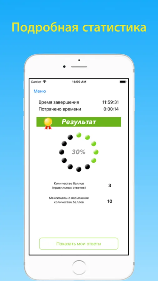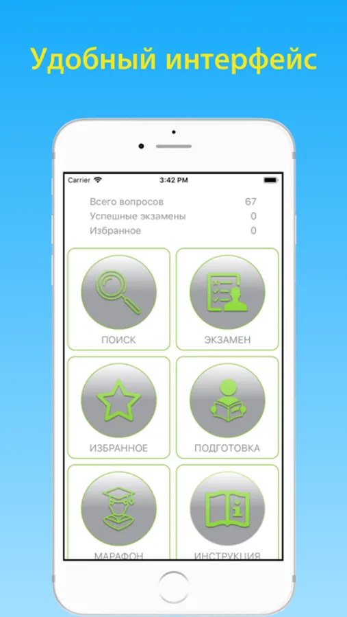 • Подготовка - Позволяет изучить вопросы в текстовом формате с отмеченными правильными ответами;