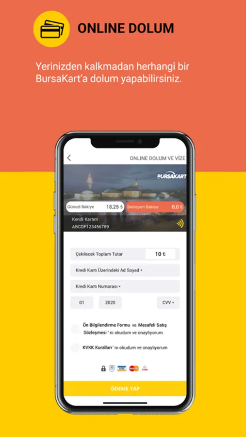 Kartınızda bakiye bitti otobüse bindiniz veya çocuğunuz/arkadaşınız okul çıkışı metro girişinde kart elinde ama içinde para yok. BursaKart Mobil uygulamayla kartınıza veya başka birinin kartına istediğiniz kadar para yükleyebilir ve dakikalar sonra kartı kullanabilirsiniz. Dolum için bayiye gitmenize, kioska gitmenize hatta üstünüzde para taşımanıza bile gerek yok.