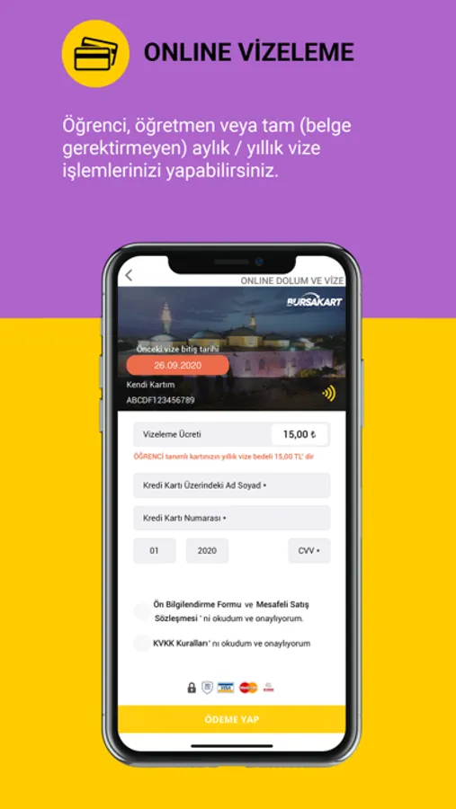 Öğrenci abonmanınızın yıllık vizesini yaptırmak istiyorsunuz ancak sınav yoğunluğunuz arasında birde git gel yol parası vermek istemiyorsunuz. Çözüm BursaKart Mobil’de. Cebinizden online vizeleme fonksiyonunu kullanarak yerinizden kalkmadan kartınızı vizeletebilirsiniz.
