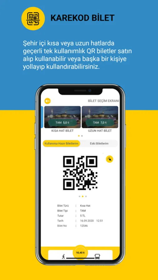 Bir Bursakartınız yok ve kullan-at bilet satın almak istiyorsunuz, etrafınızda bayi veya kiosk yoksa çözümü BursaKart Mobil’de. Cebinizde para taşımadan BursaKart mobil’den NFC veya QR kodlu kullan at uzun veya kısa hat bilet alarak otobüslere veya metro’ya hızlıca binebilirsiniz. Aldığınız QR kod bileti arkadaşınıza yollayıp biniş hediye edebilirsiniz.