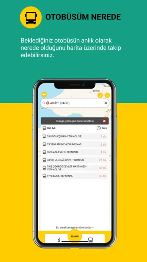 Durakta otobüs bekliyor veya gideceğiniz duraktan kaç dakikada bir otobüs geçtiğini merak ediyorsunuz. Ya da 9 da işte olmak için hangi otobüse binmeniz gerektiğine bakıyorsanız cevabı BursaKart Mobil’de. Otobüsüm nerede fonksiyonu ile gerçek zamanlı otobüs lokasyon bilgisi parmaklarınızın ucunda. Durakta fazla beklemeye, kaçan otobüslere veya vardiyaya geç kalmaya son.