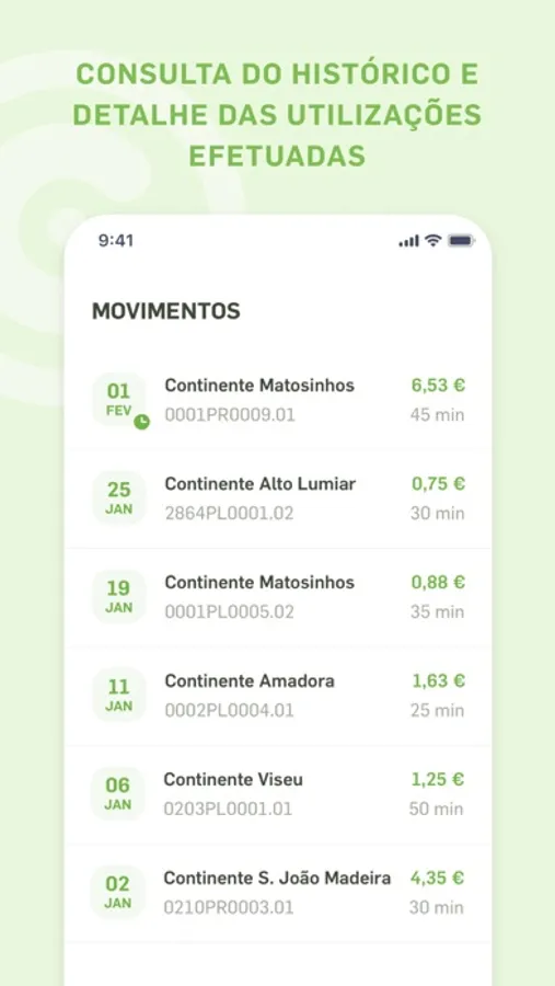 - Consultar o histórico e detalhe das utilizações efetuadas;