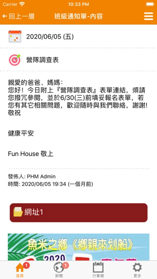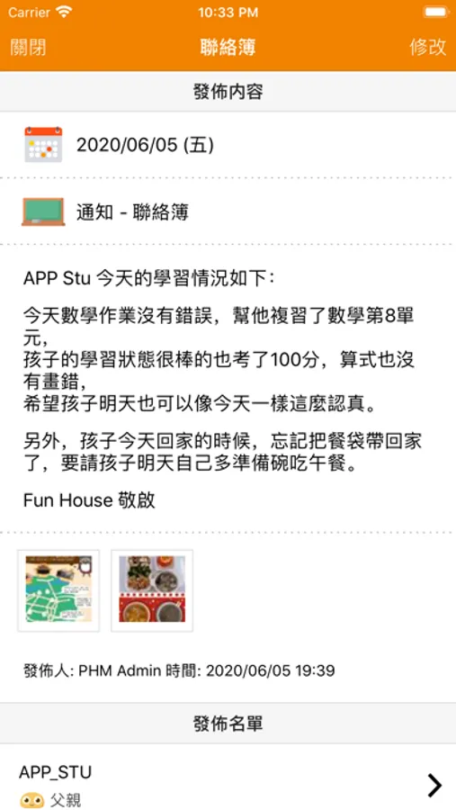2. 班級通知單:接收班級教師或學校發送的訊息。