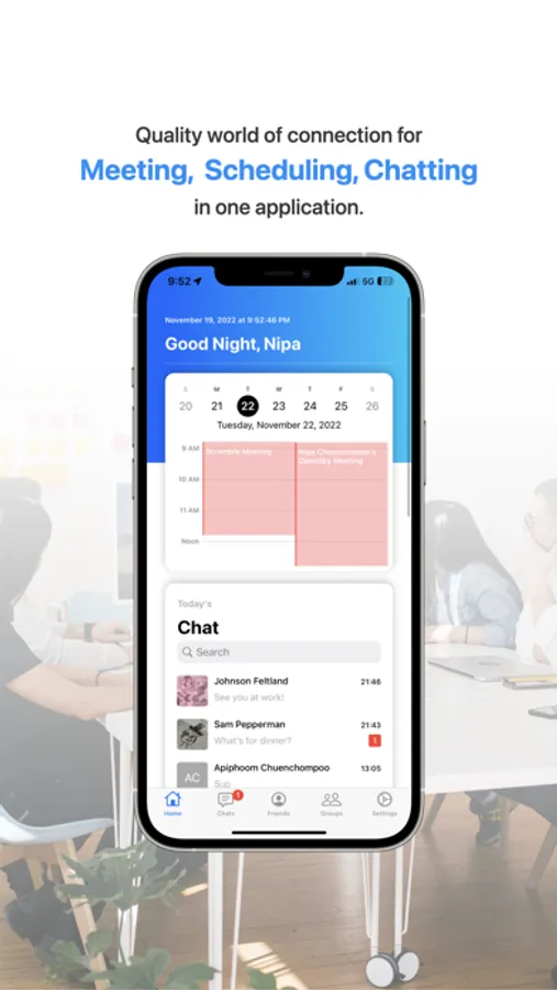 - Not just face-to-face calling, but also chat with text that will be there as long as you want.