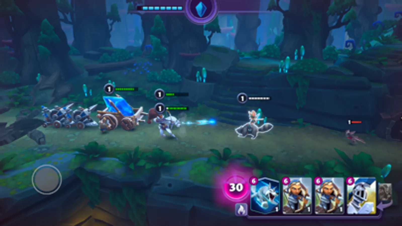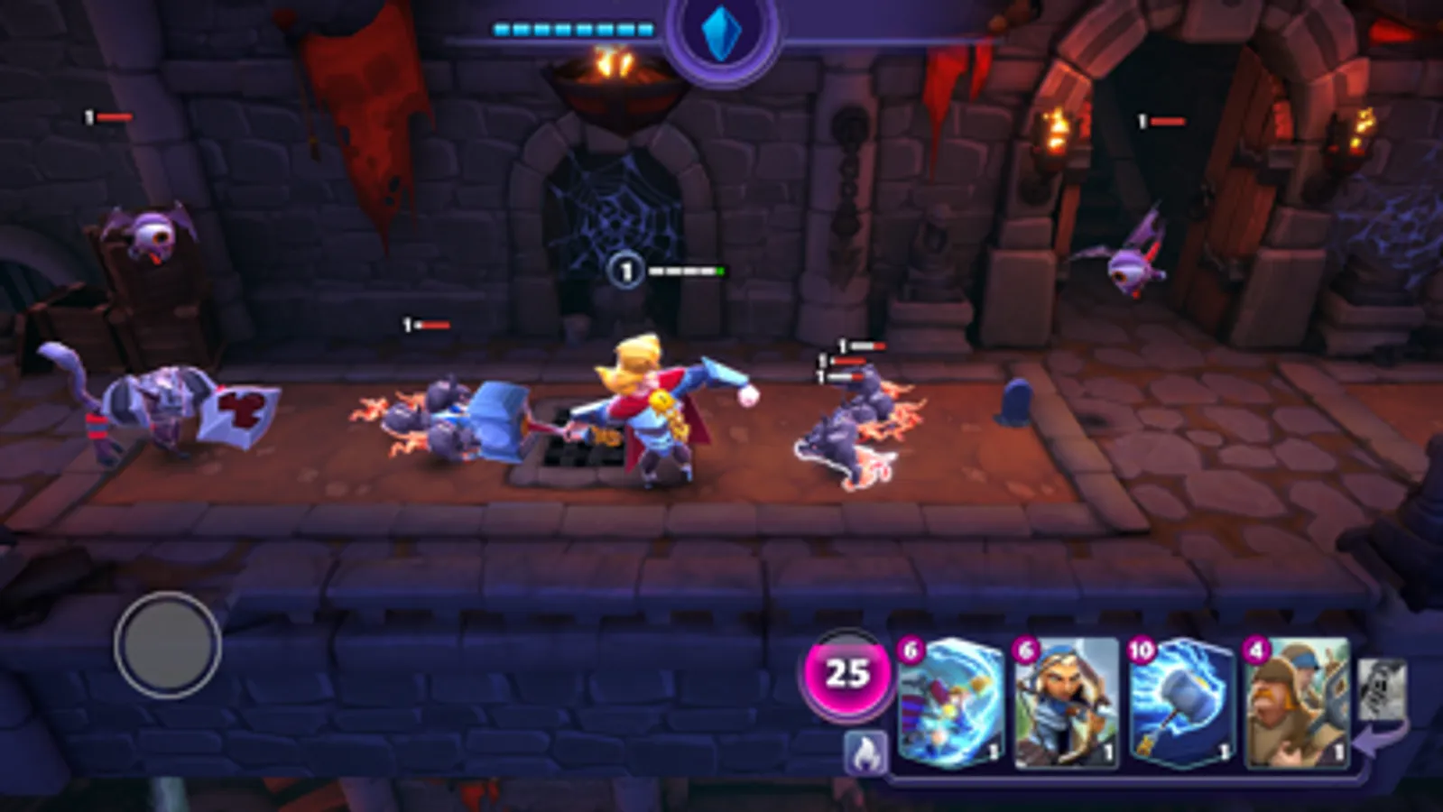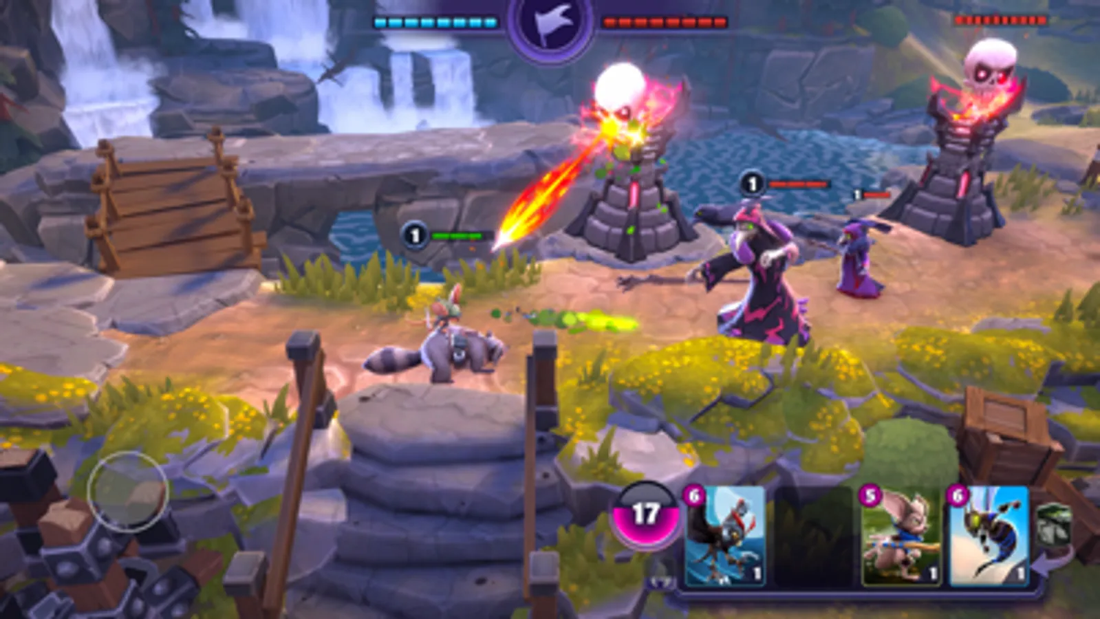 Play as one of six epic heroes, summon troops, sling spells, and destroy enemy towers to achieve victory in this exciting head-to-head castle defense game. Players can enjoy single-player adventures with three campaigns filled with campy storytelling, sweeping musical scores, and hand-crafted environments. Or they can dive into fast-paced battles with friends and family in competitive 1v1 or 2v2 matches. Players can build custom decks and upgrade cards to create monstrous combinations of troops and spells as they aim to defeat their opponents, destroy the Soul Gem that gives them power, and move to the top of the leaderboards.