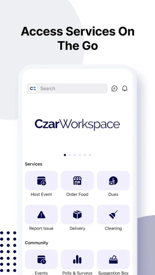 The Czar WorkSpace is a one-stop community focused app for members of Czar WorkSpace.