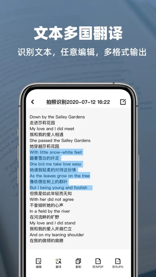 # 手机拍照,高清扫描,全自动读取文本信息。