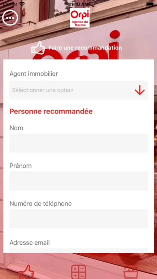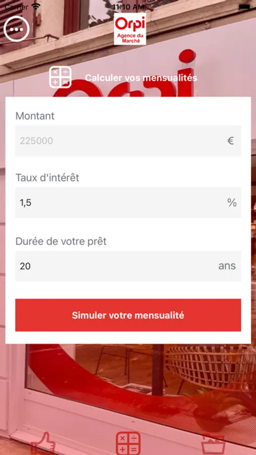 Grâce à l'application ORPI Agence du Marché vous allez à la fois pouvoir faire une recommandation d'un ami, voisin, famille, etc à l'agent immobilier de votre choix, mais également pouvoir calculer vos mensualités de remboursement de votre crédit immobilier.