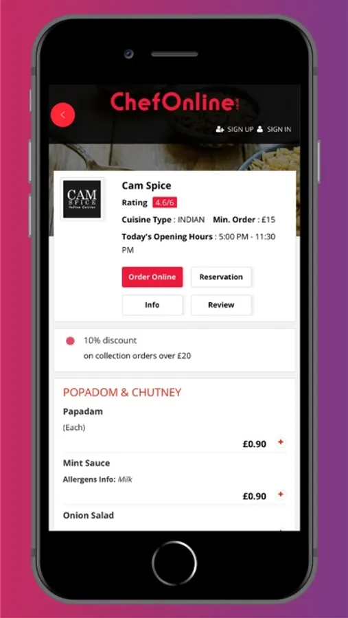 -Download Cam Spice Restaurant app on your mobile phone.