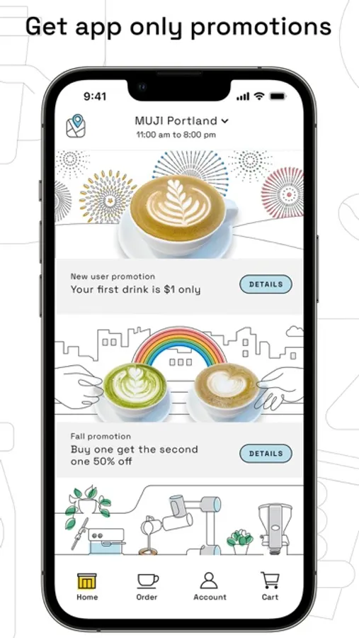 Customize and place your order, and pick up from a nearby Artly barista bot without waiting in line.