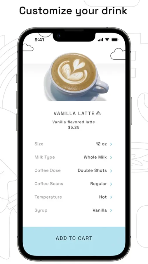 View our drink menu and customize your selection, adjusting the size, milk, or coffee beans.