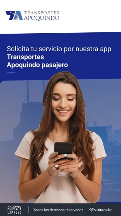 Transportes Apoquindo Aquívoy Express®, permite a nuestros usuarios solicitar o planificar viajes las 24 horas del día, sin tener que realizar una llamada telefónica o enviar un mail para gestionar su coordinación. Además, podrá conocer en tiempo real la hora de llegada del móvil, conocer la identidad del conductor y móvil asignado y evaluar la calidad del servicio recibido.