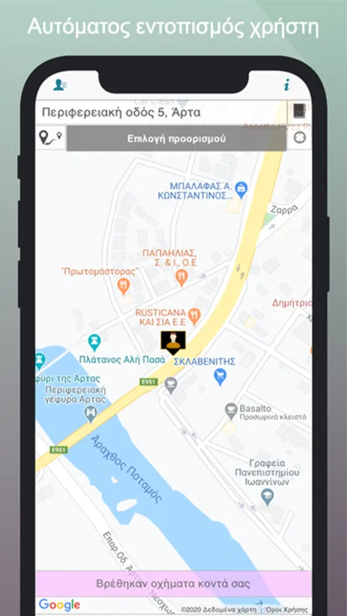 - το πρόγραμμα πραγματοποιεί αυτόματη αναζήτηση οχήματος κοντά στην τοποθεσία σας