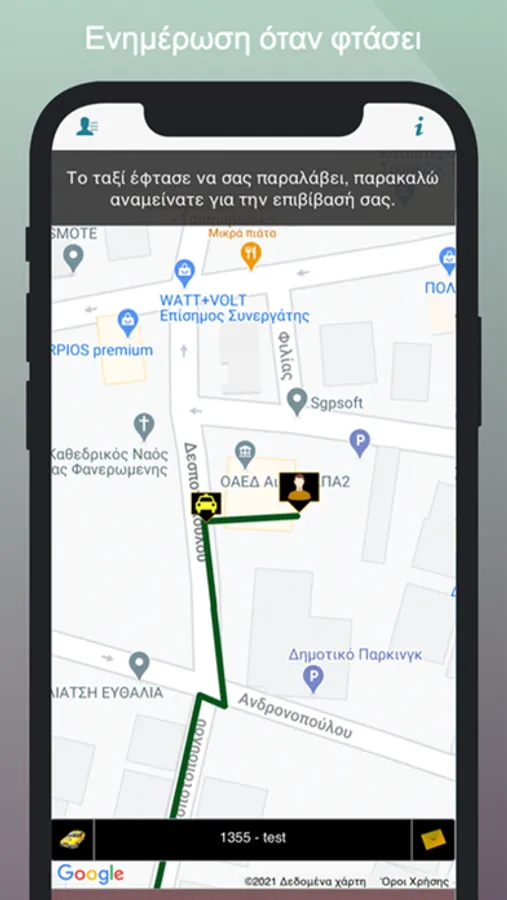 Η διαδικασία της κλήσης ταξί είναι πλήρως εναρμονισμένη με το νόμο GDPR και τα ευαίσθητα στοιχεία του πελάτη διαγράφονται αμέσως μετά το τέλος της διαδρομής από το σύστημα κλήσεων.