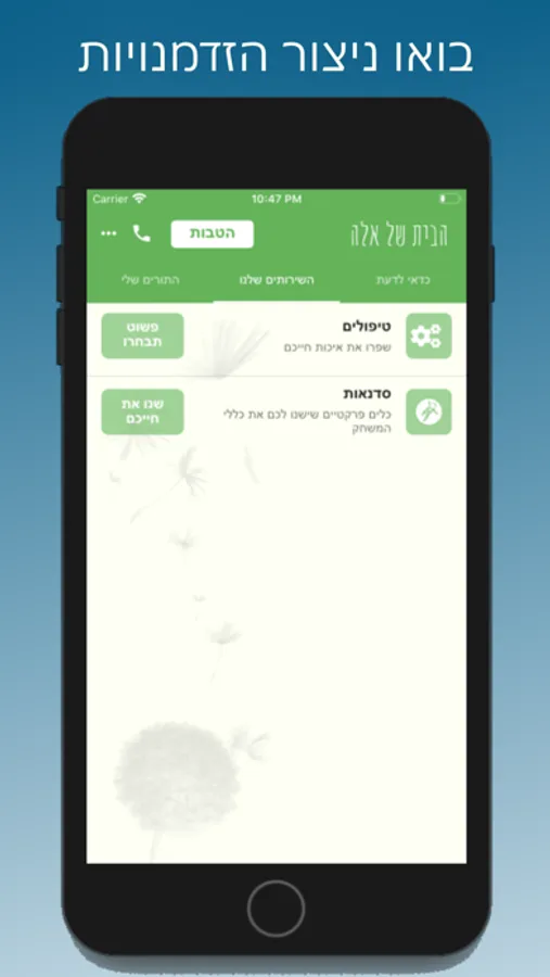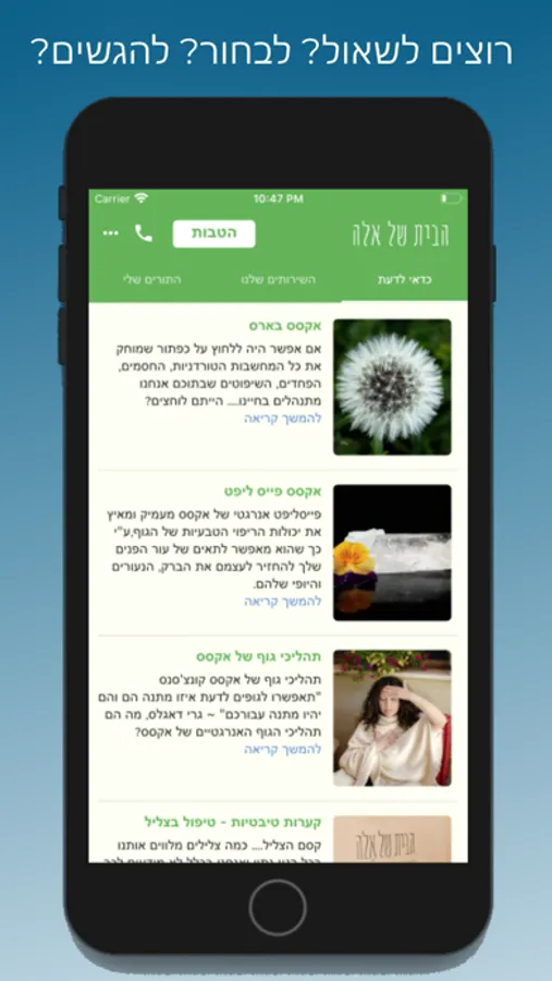 אולי תרצו לפתוח את הבוקר עם יוגה? להפיג מתחים של יום עבודה ארוך עם צלילי קסם מרפאים של קערות טיבטיות? אולי לחוות את הקסם והקלילות של אקסס קונצ’סנס (גישה העוסקת בבחירה בקלילות, הנאה ושמחה)? מדיטציה, טיפול בפרחי באך? אולי תרצו לקחת קורס נקודתי באסטרולוגיה סינית? ייתכן שאתם בדיוק במעבר דירה ויעוץ פאנג שוואי הוא המצרך החיוני ביותר עבורכם כרגע?