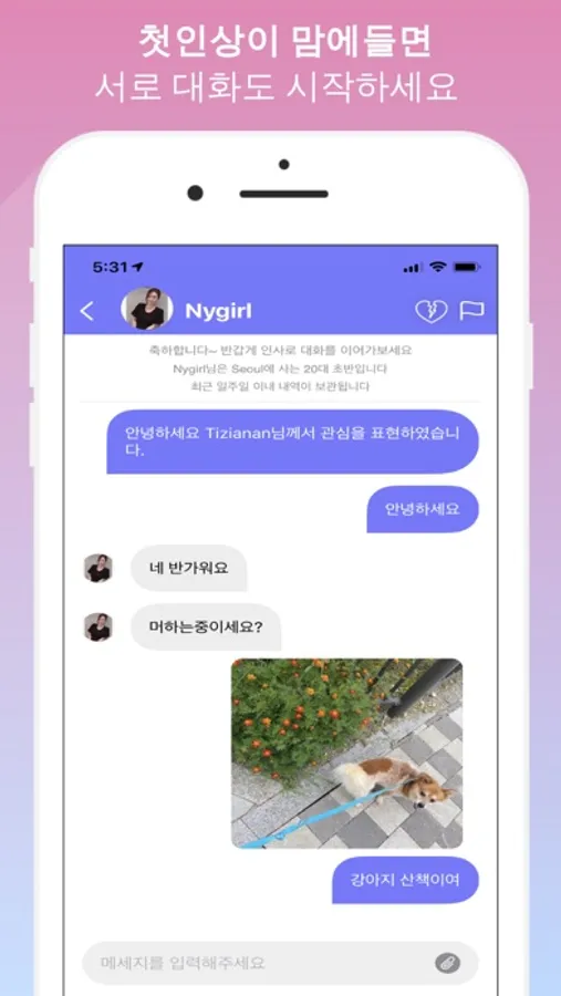 * 맘에 드는 분을 발견하면 "끌림"을 표현하고 대화를 시작해보세요.