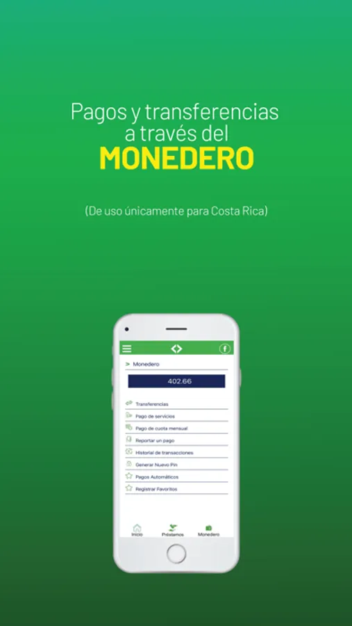 * Consultar saldos y movimientos de tu monedero o de tu préstamo. ( Disponible solo en Costa Rica)