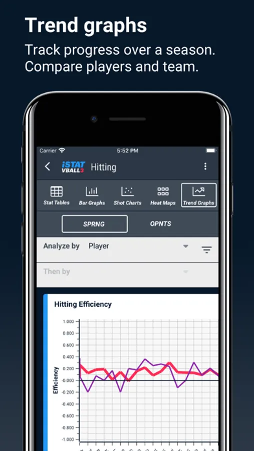 - View charts by individual player, for the team as a whole, or the opponent