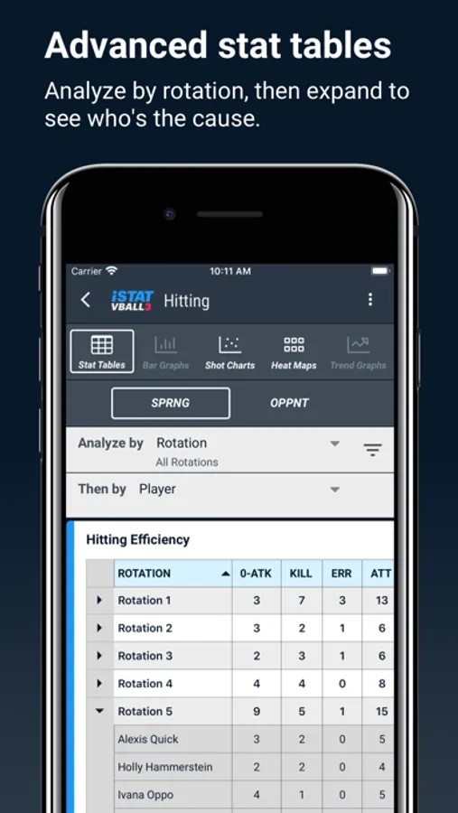 - View by player or rotation, your team or the opponent