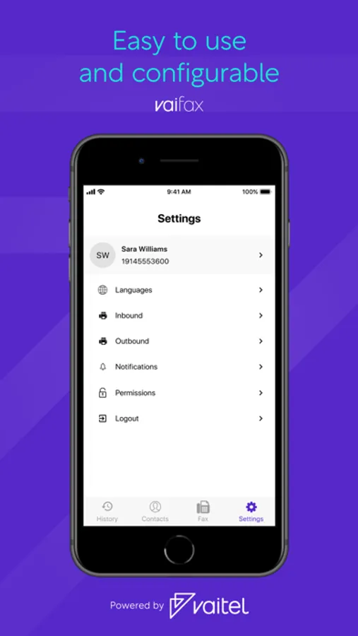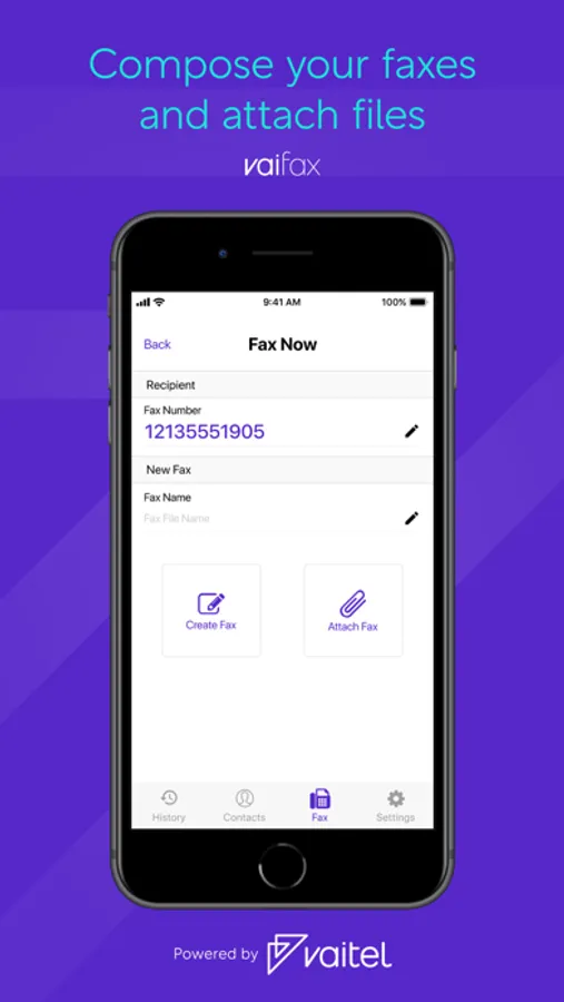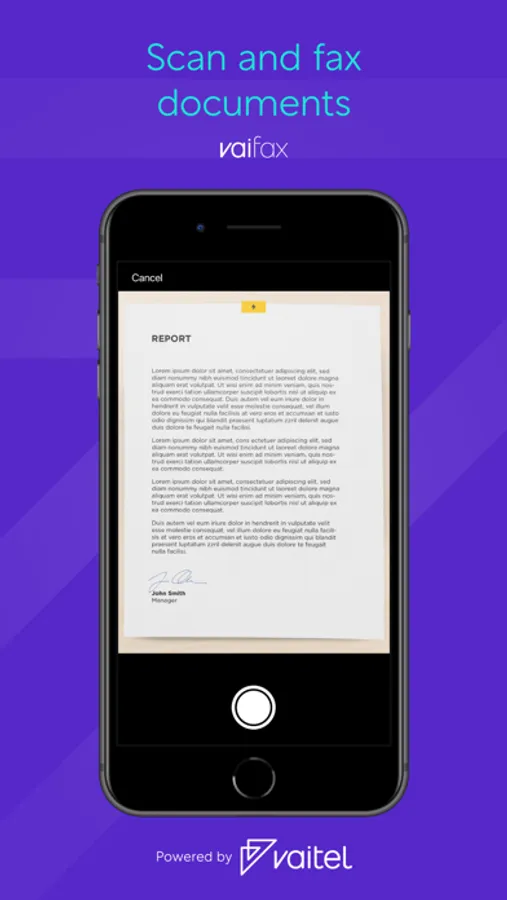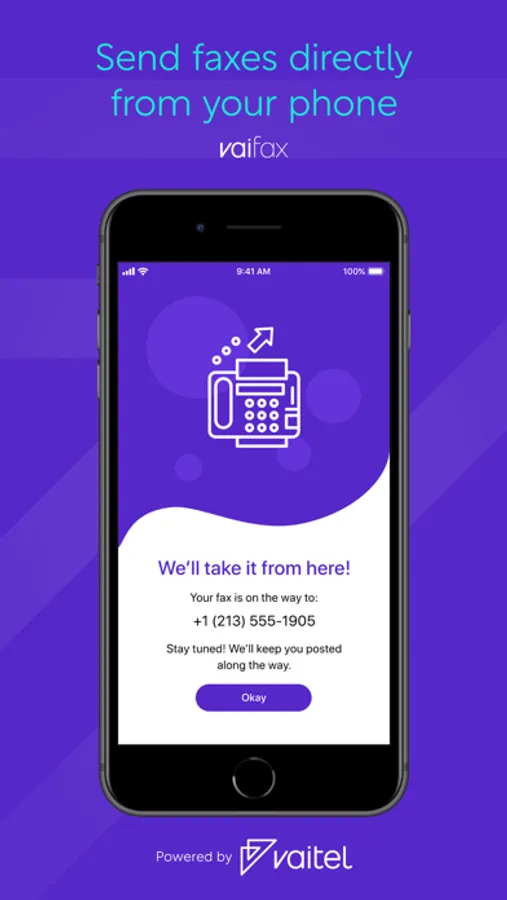Vai Fax is your mobile fax machine. Login using your existing Vai Fax number and send fax documents, photos and notes directly from your mobile phone.