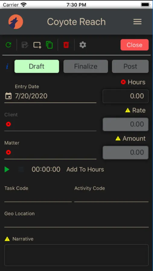 Coyote Reach is the mobile timekeeping app for attorneys using Coyote Analytics Complete.